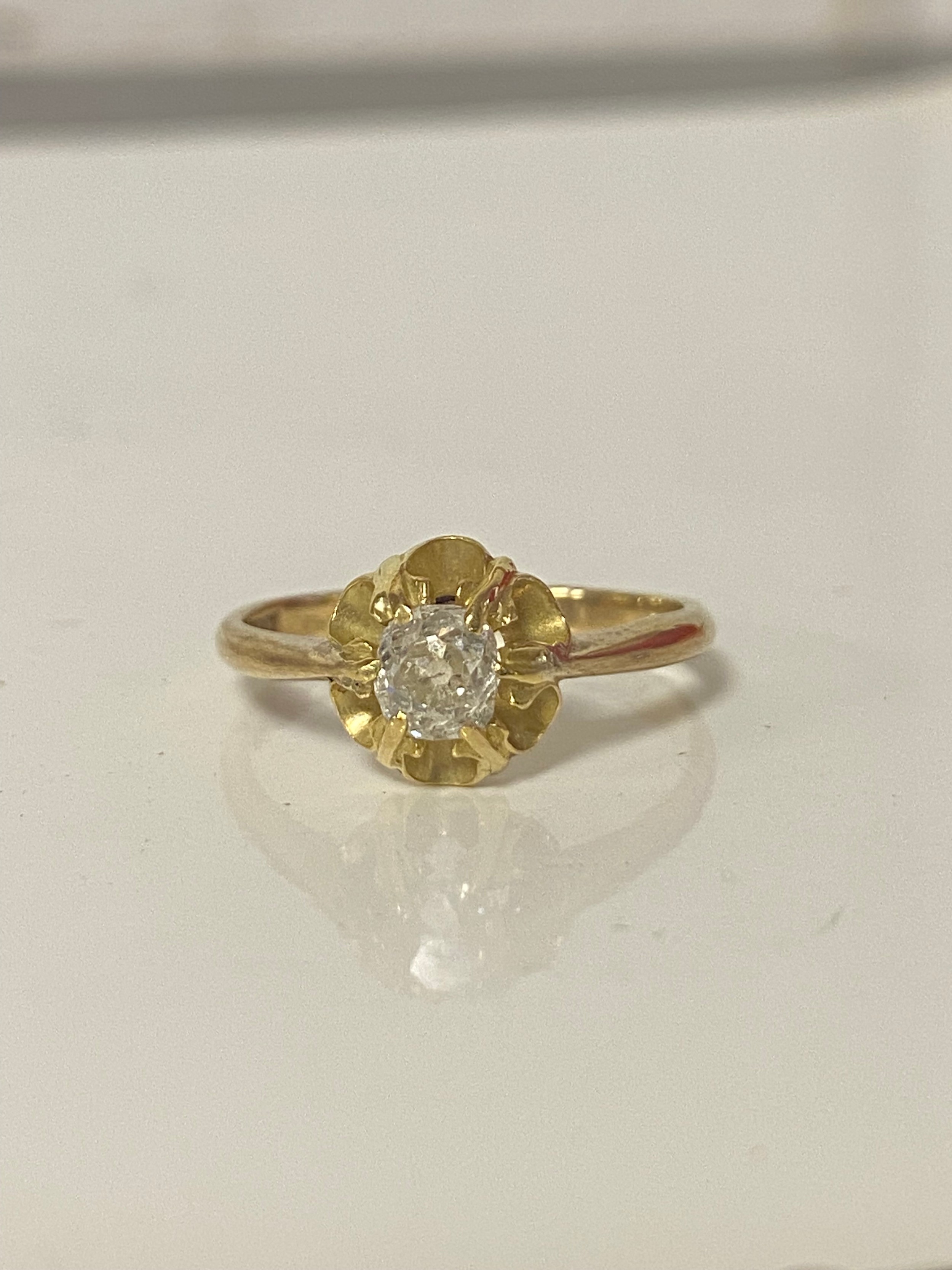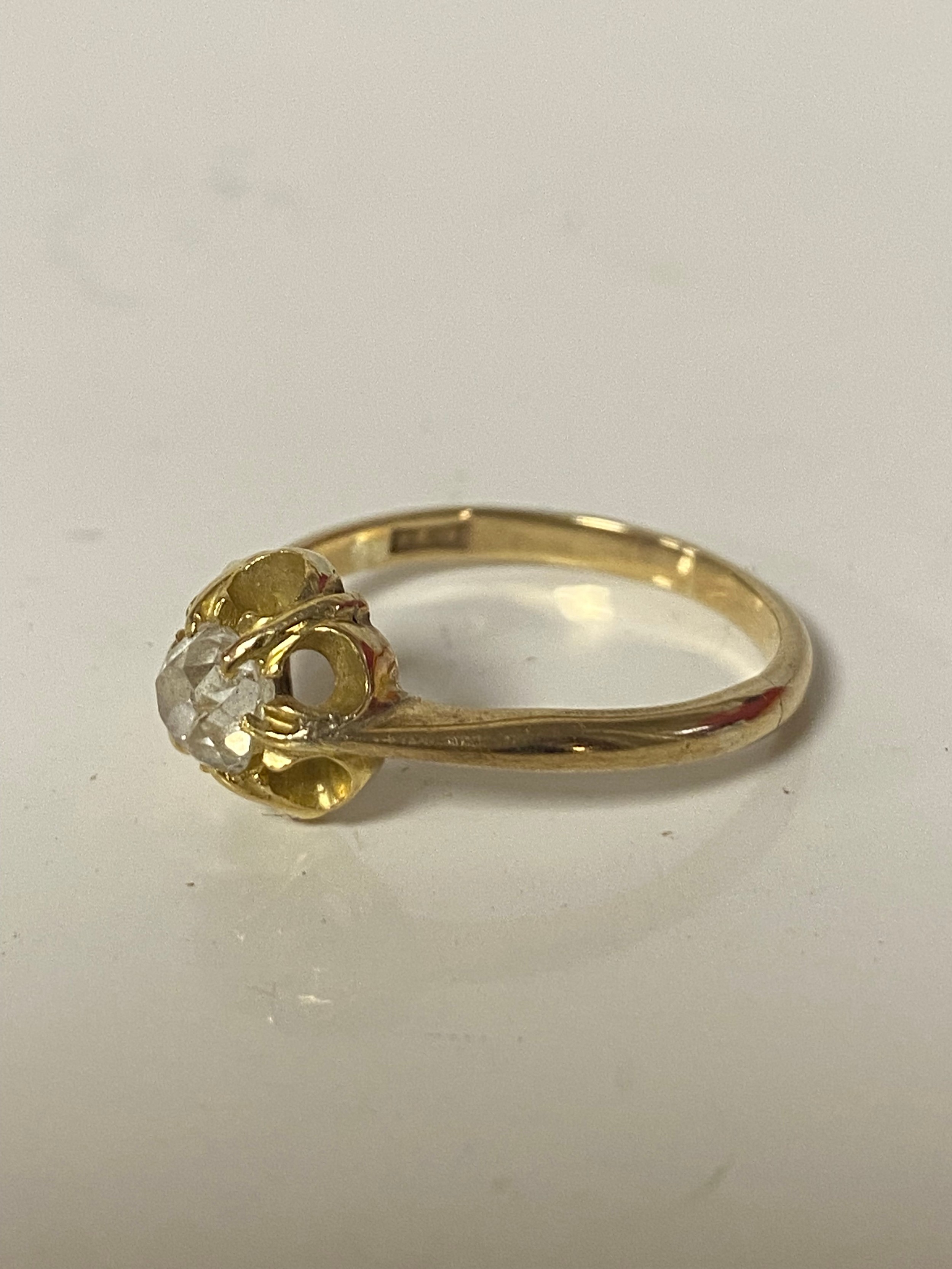 A diamond set single stone ring the old cut diamond set in 9ct gold -