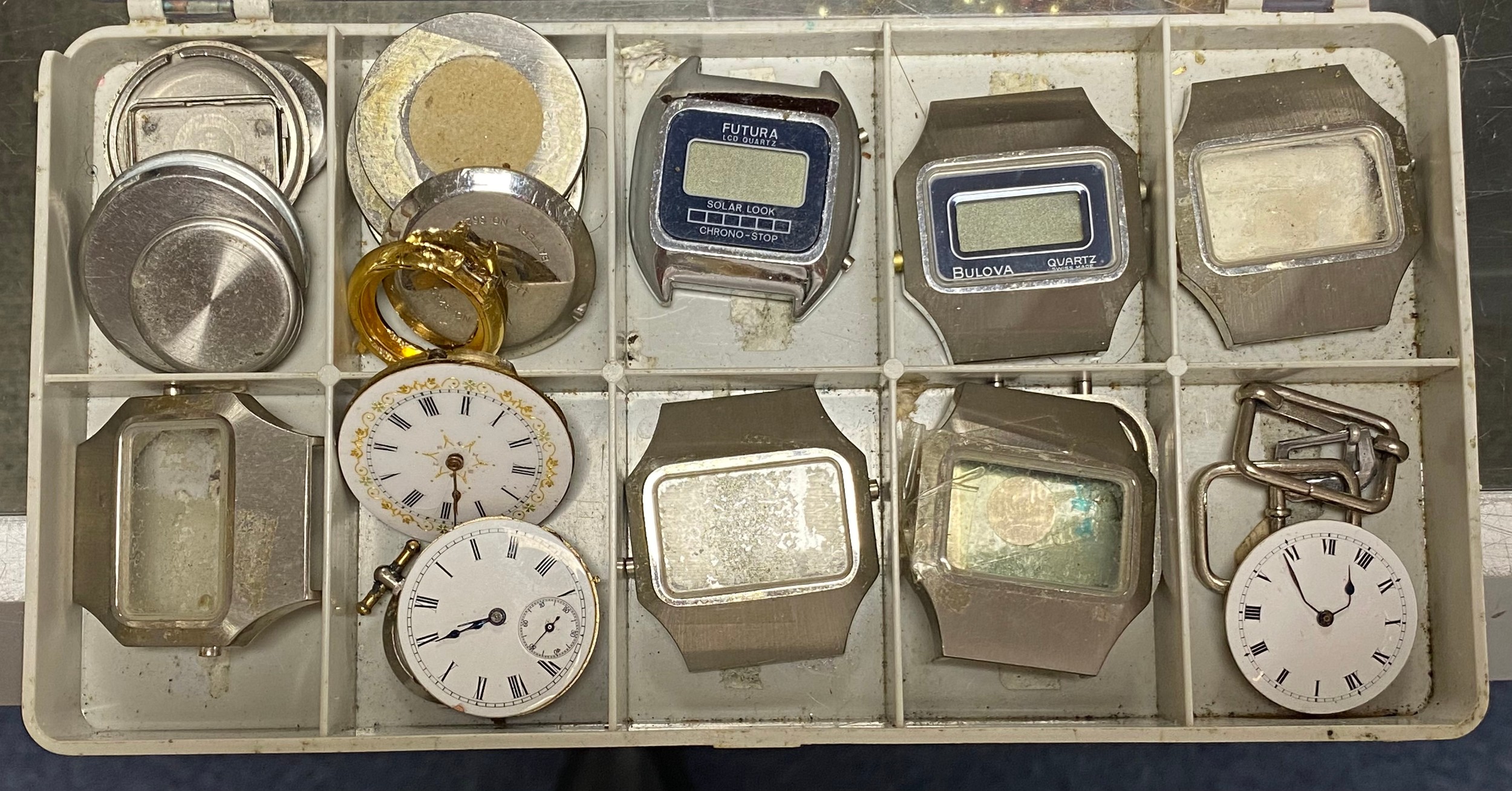 A small quantity of pocket watch movements and wristwatch cases including Bulova -