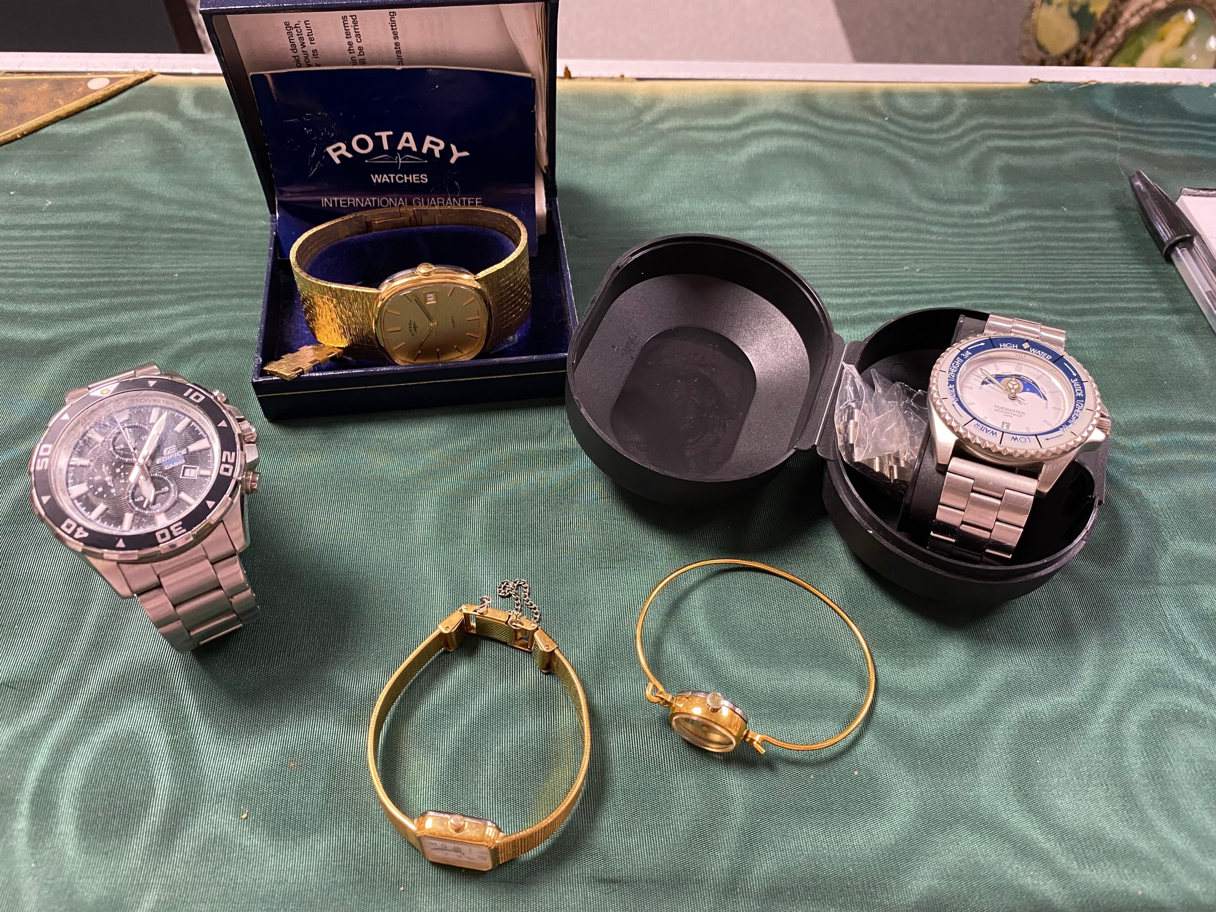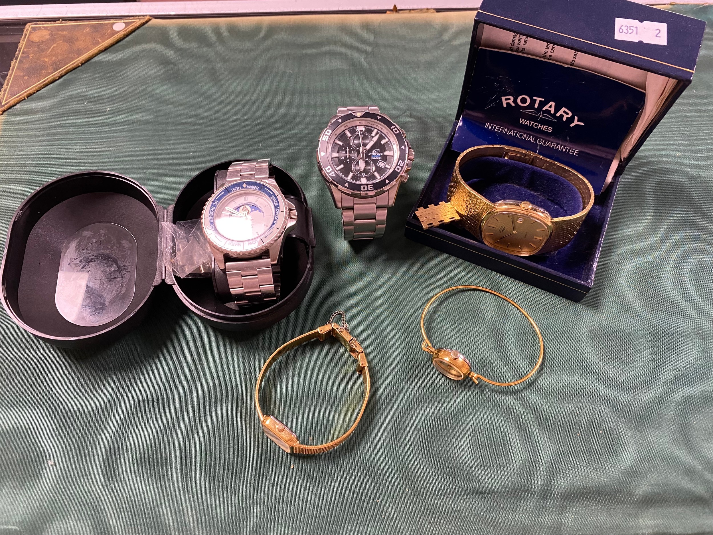 A Rotary gold plated wristwatch, a gent's Casio and three other wristwatches (5) -