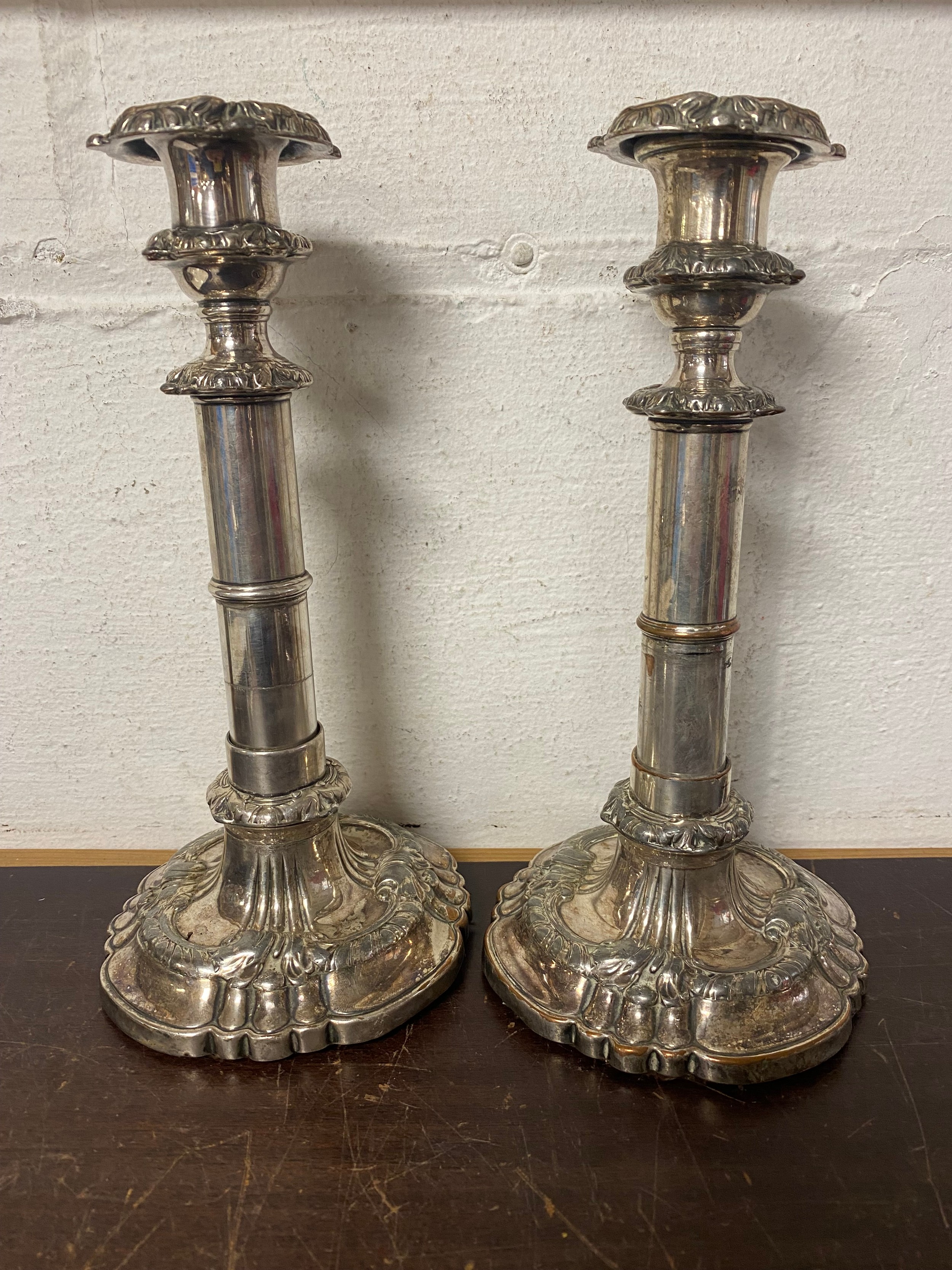 A pair of silver plated telescopic candlesticks -