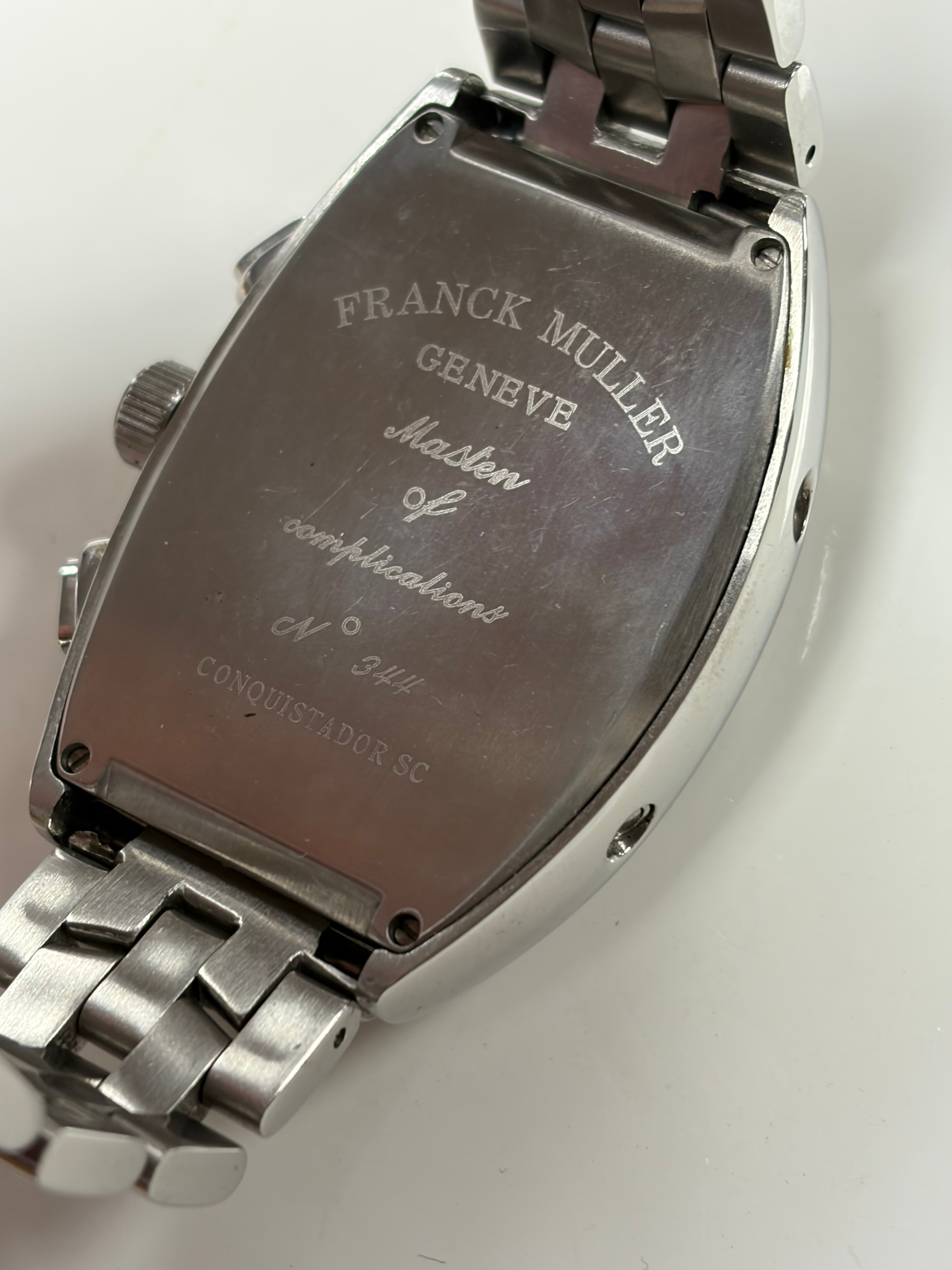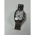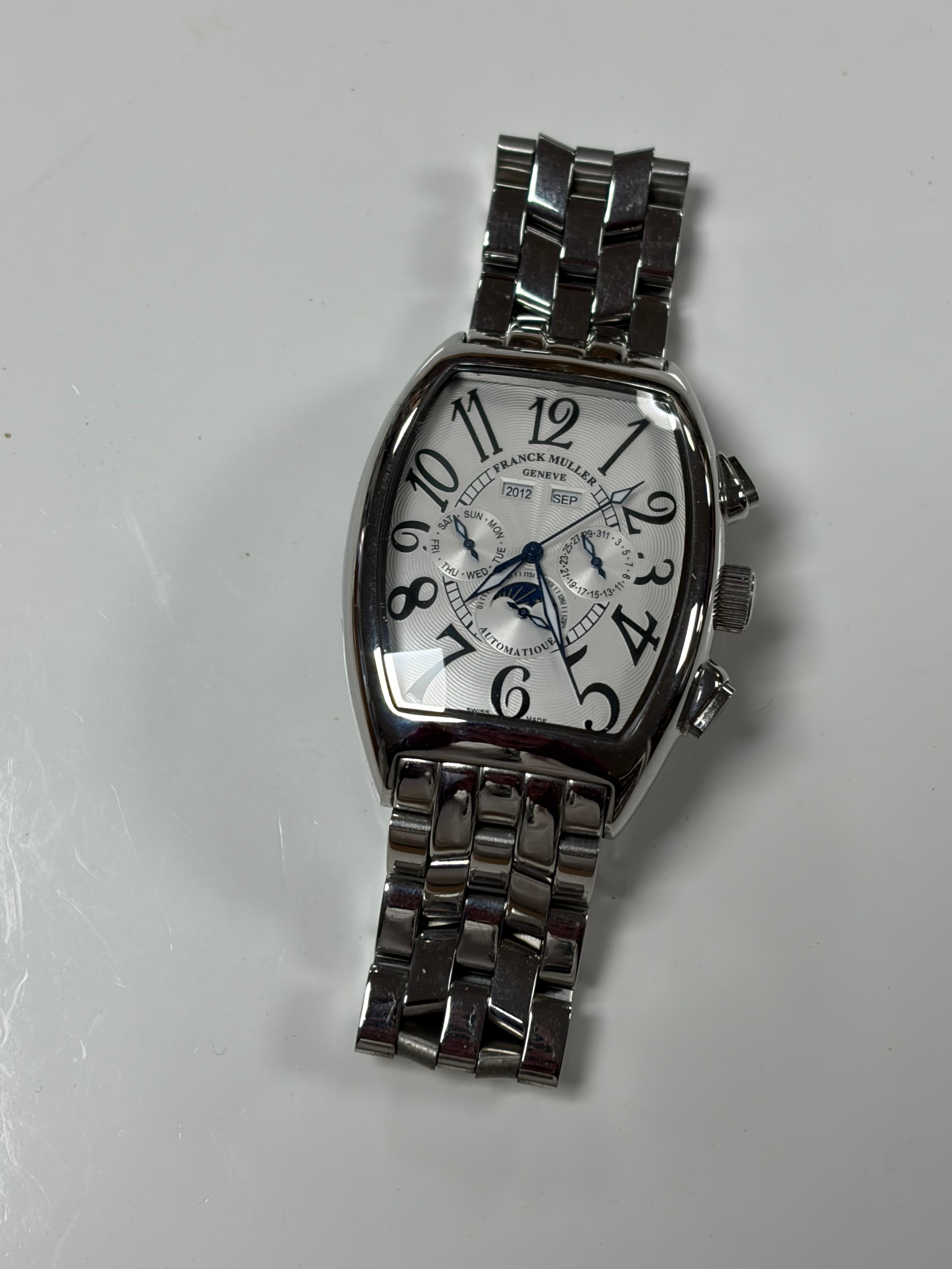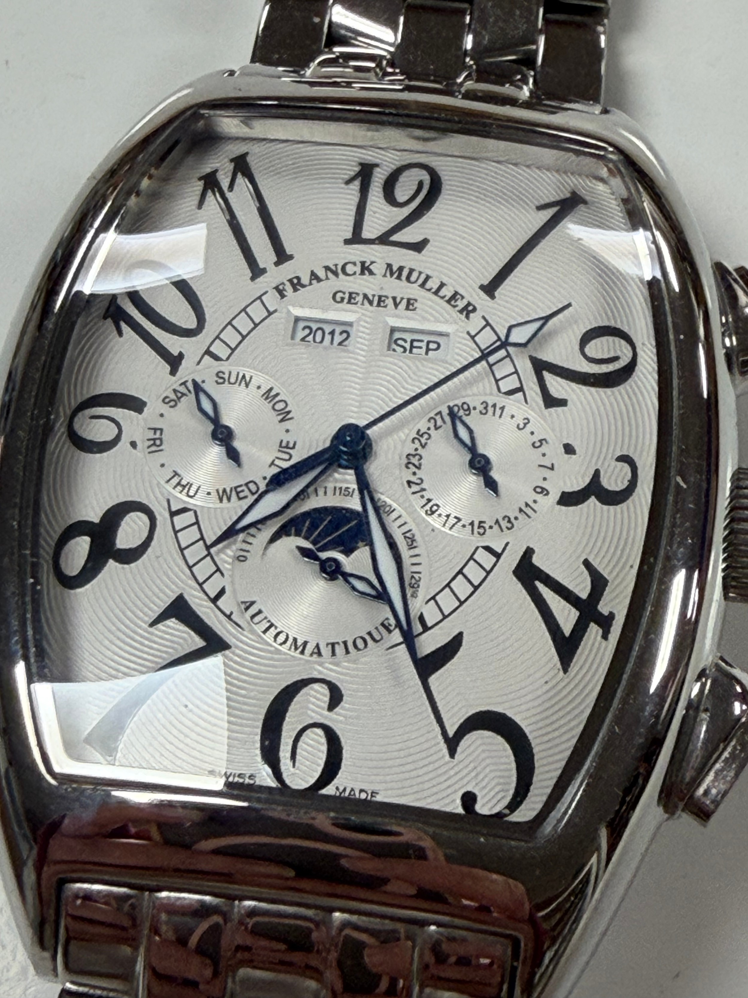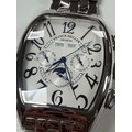 A gents 'Franck Muller' style wristwatch, the tonneau shaped dial with date aperture, subsidiary dials and Arabic markers -