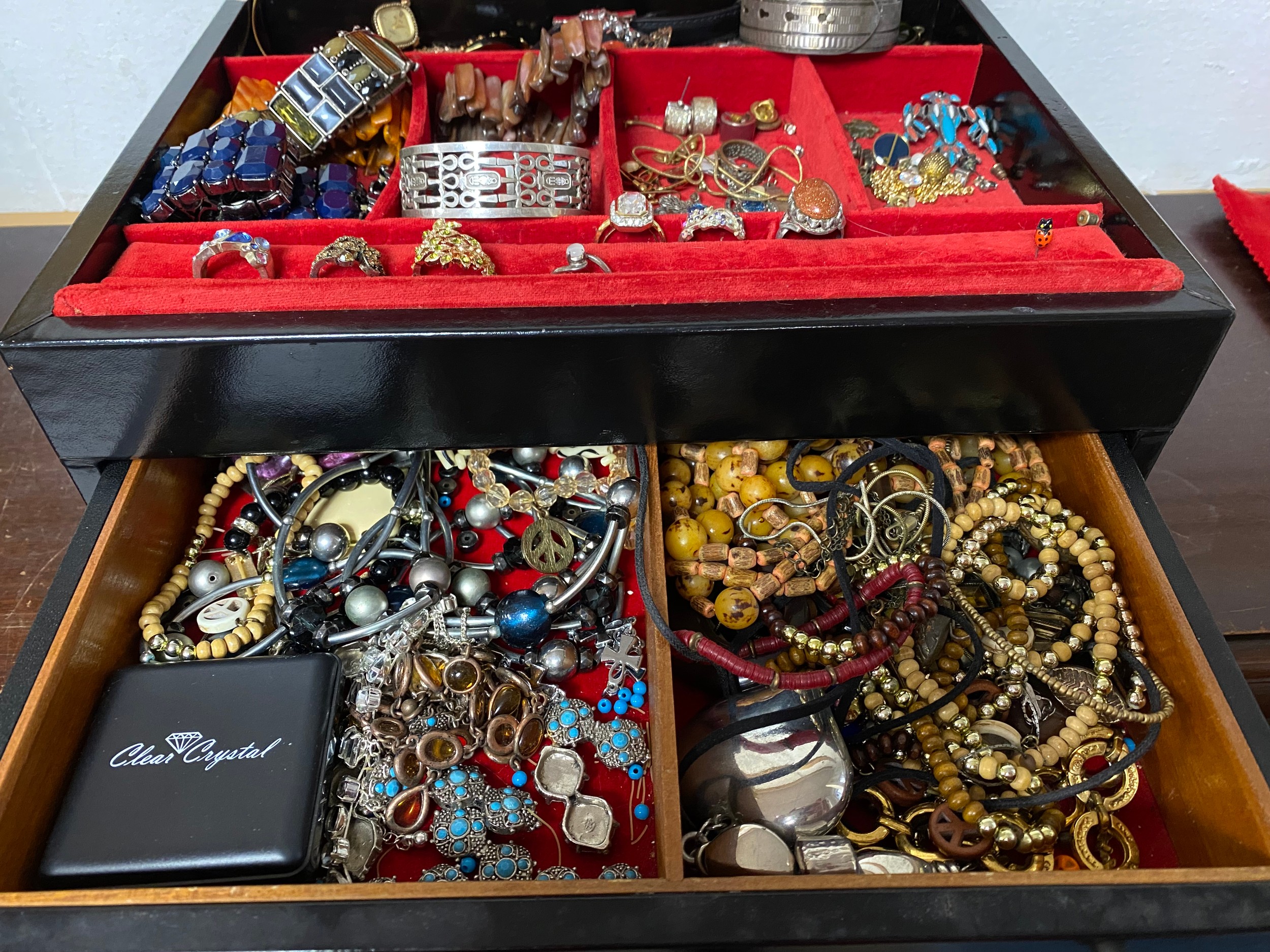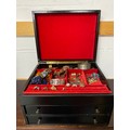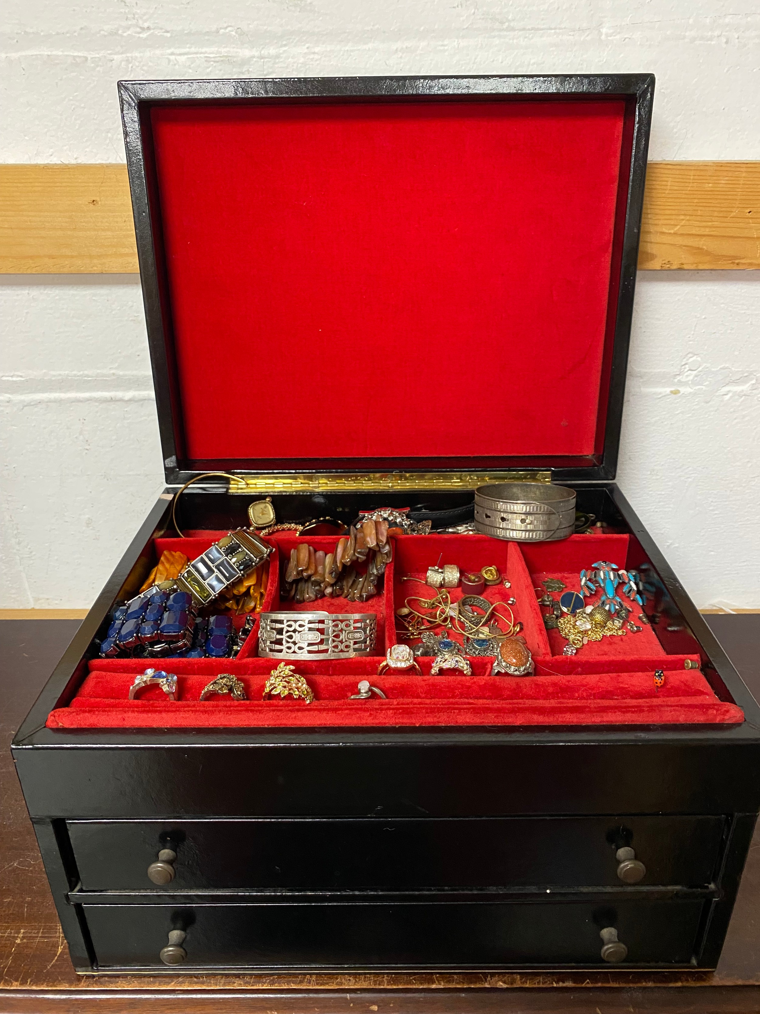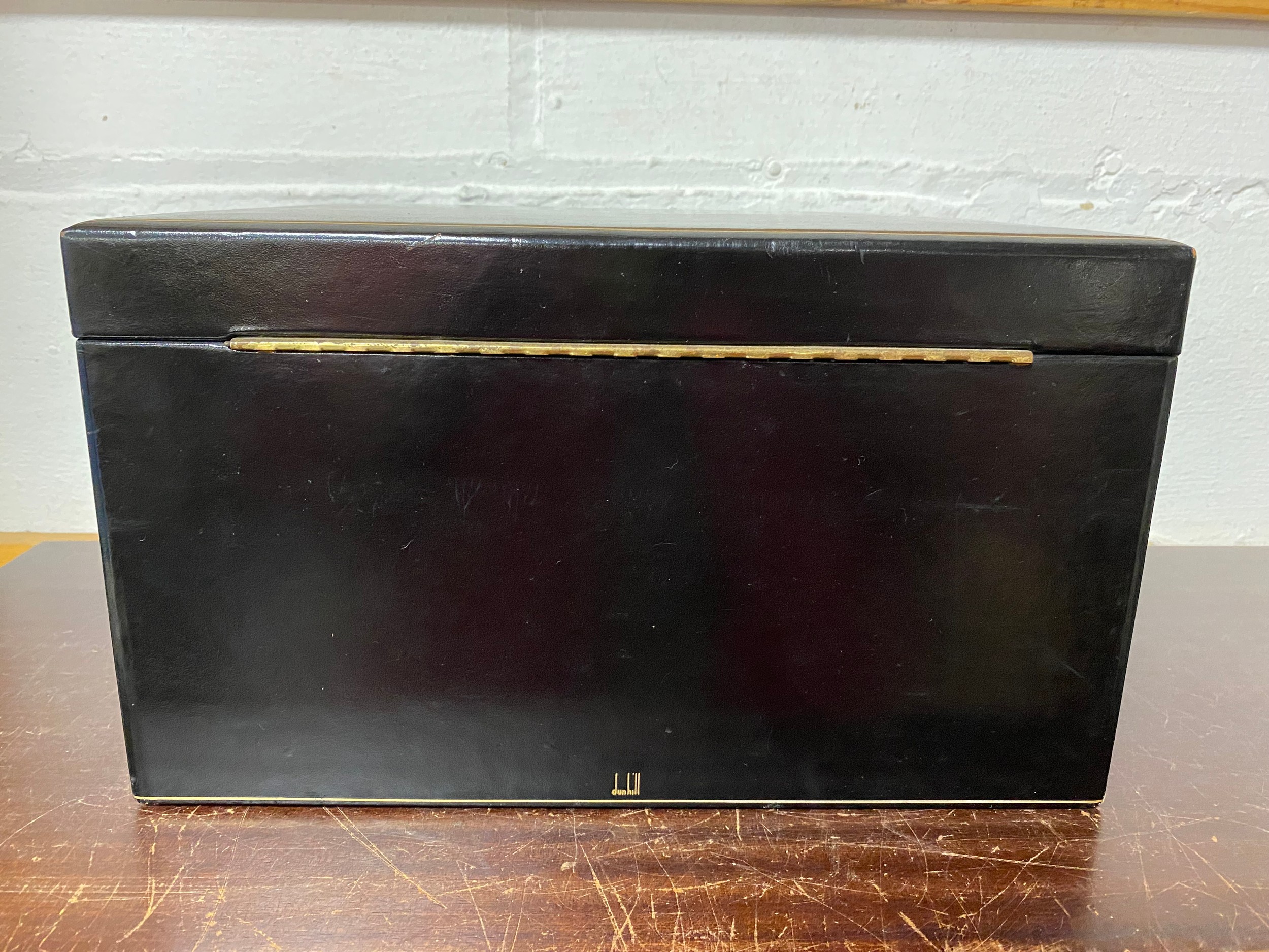 A Dunhill jewellery box and contents, to include a silver buckle bangle, silver bracelet, costume jewellery, etc -