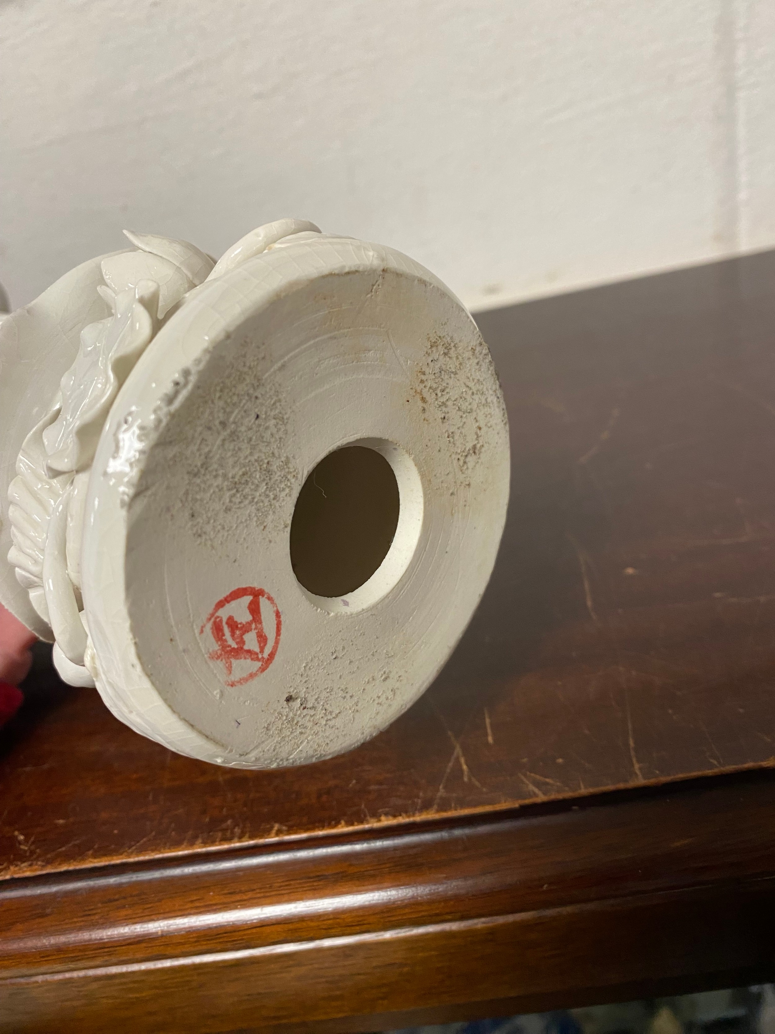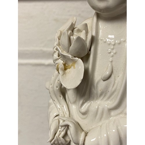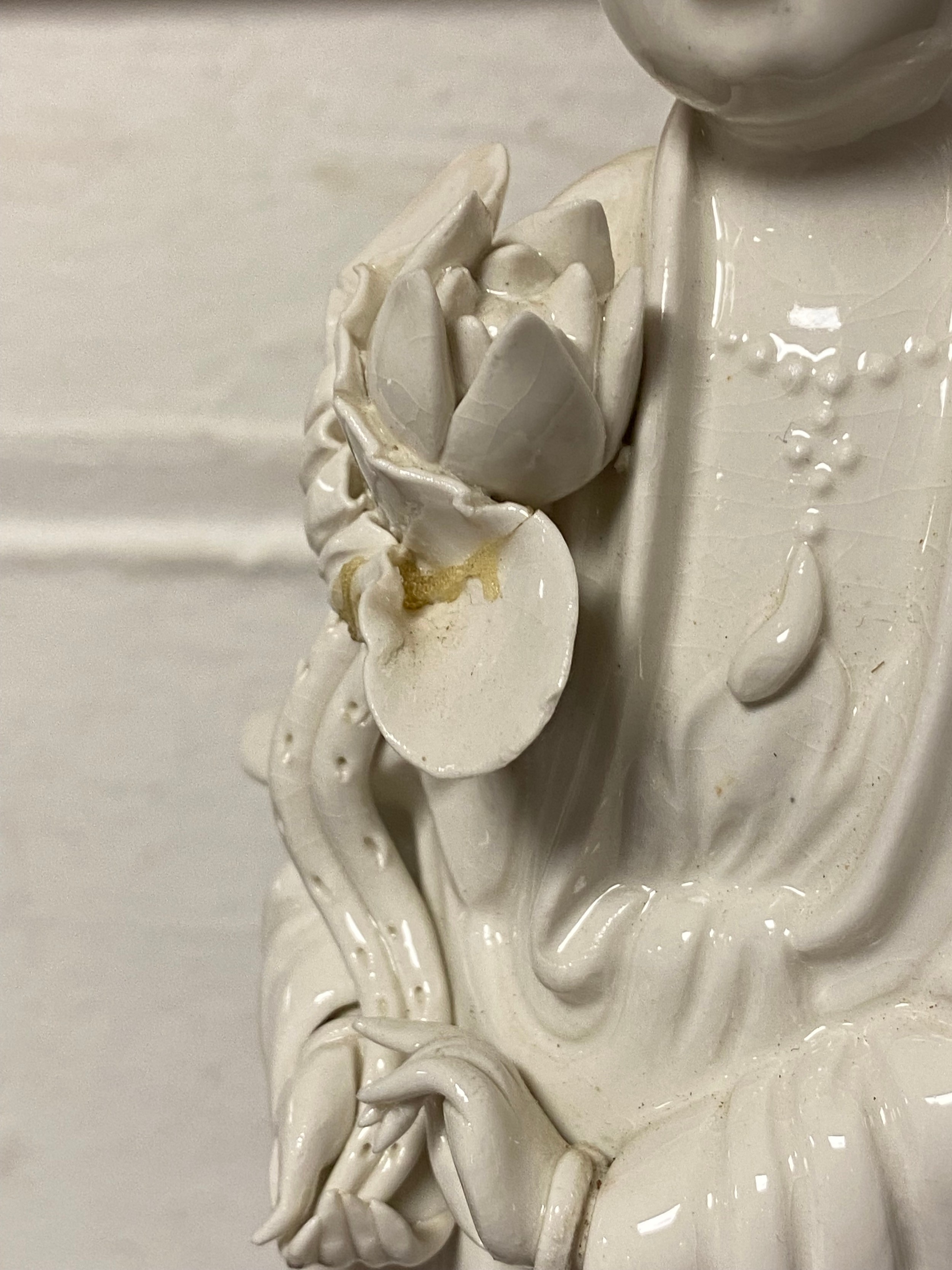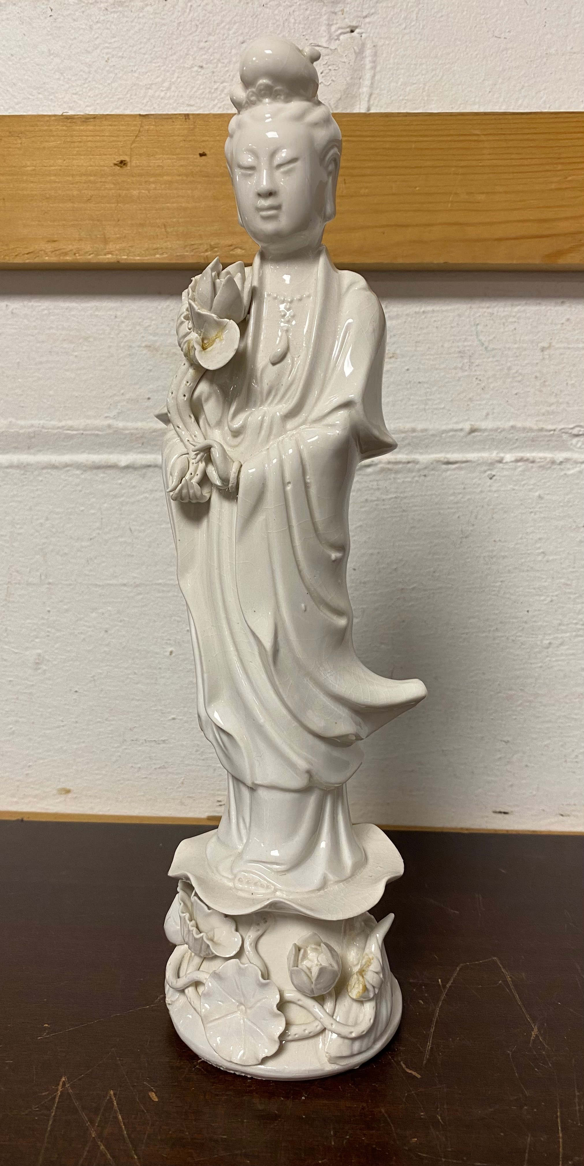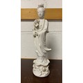 A Chinese blanc de chine model of Guanyin, on lotus base -