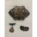 A silver nurse's buckle, with thistle decoration, together with two naval sweetheart brooches -