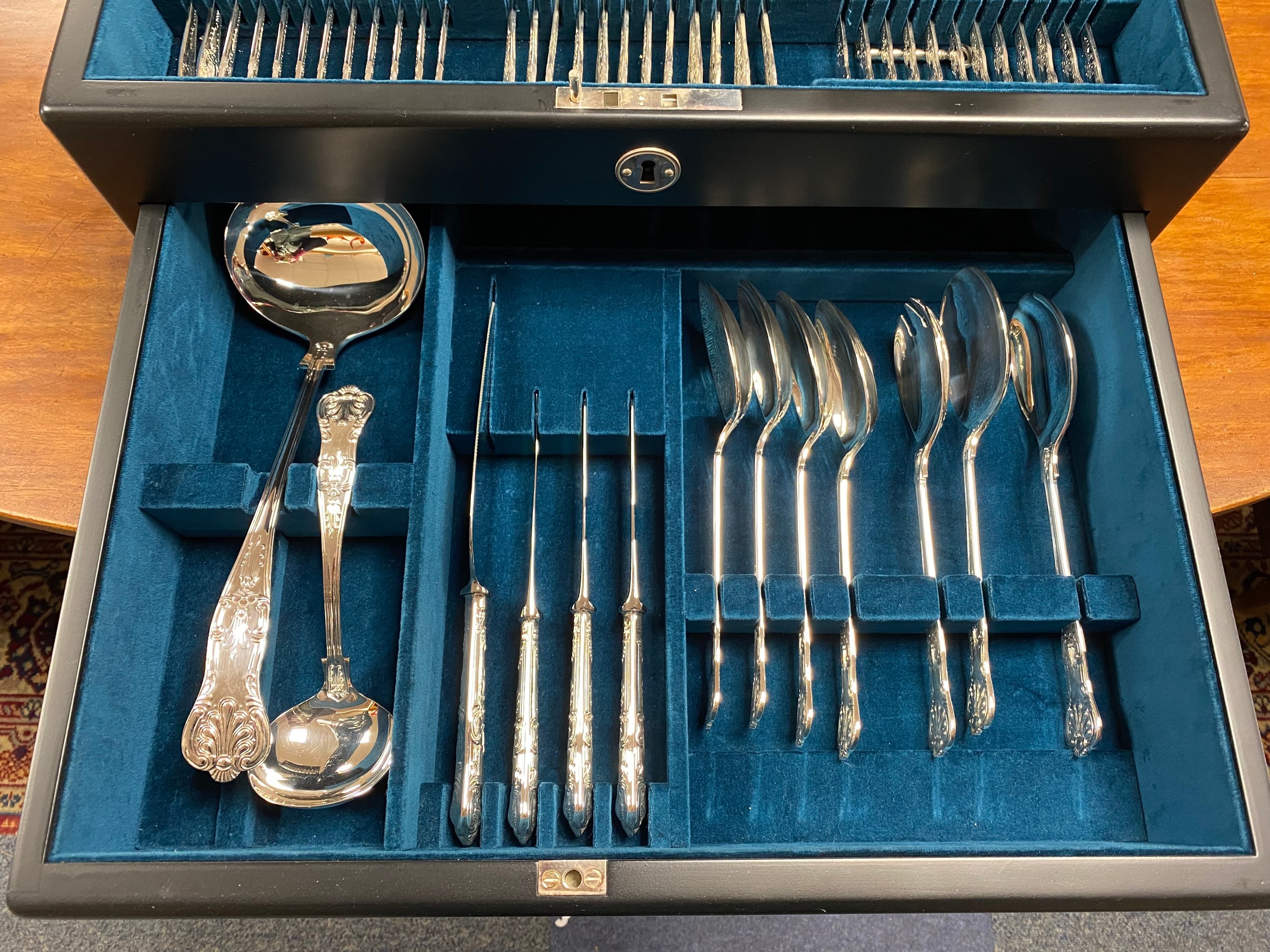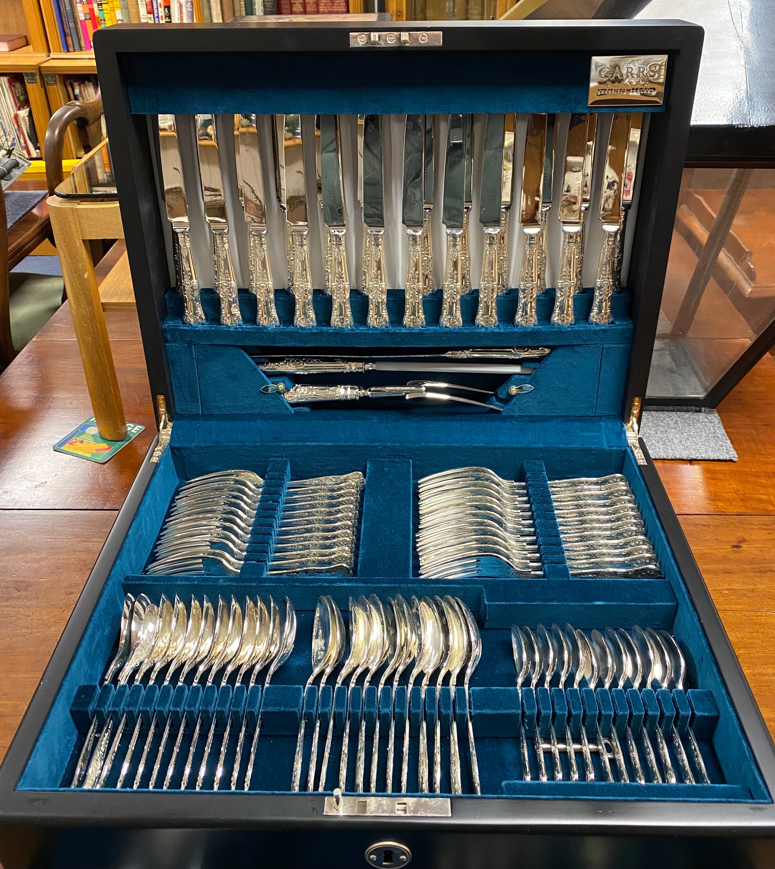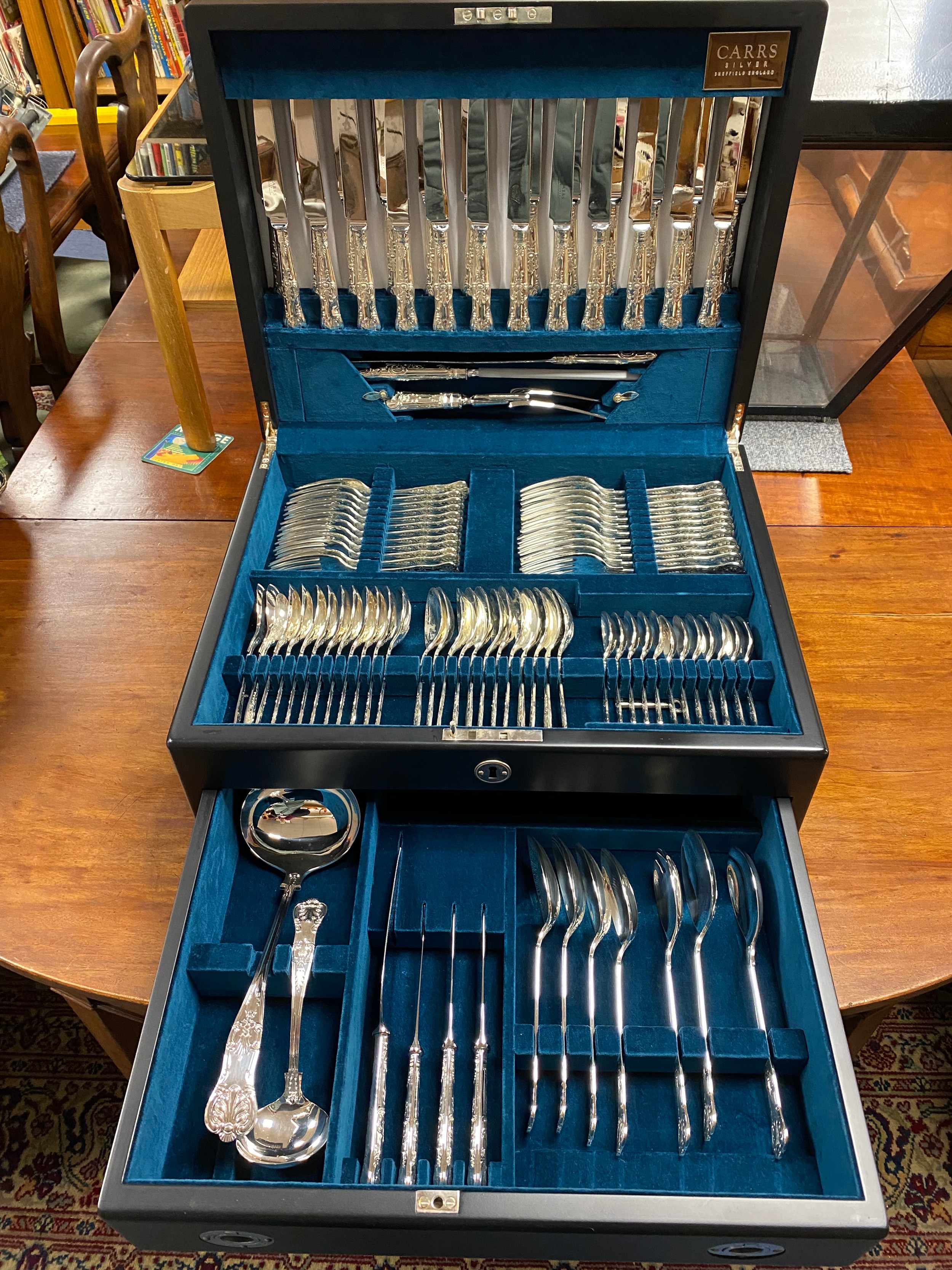 A modern silver plated canteen of cutlery for 12, by Carrs, in fitted case -
