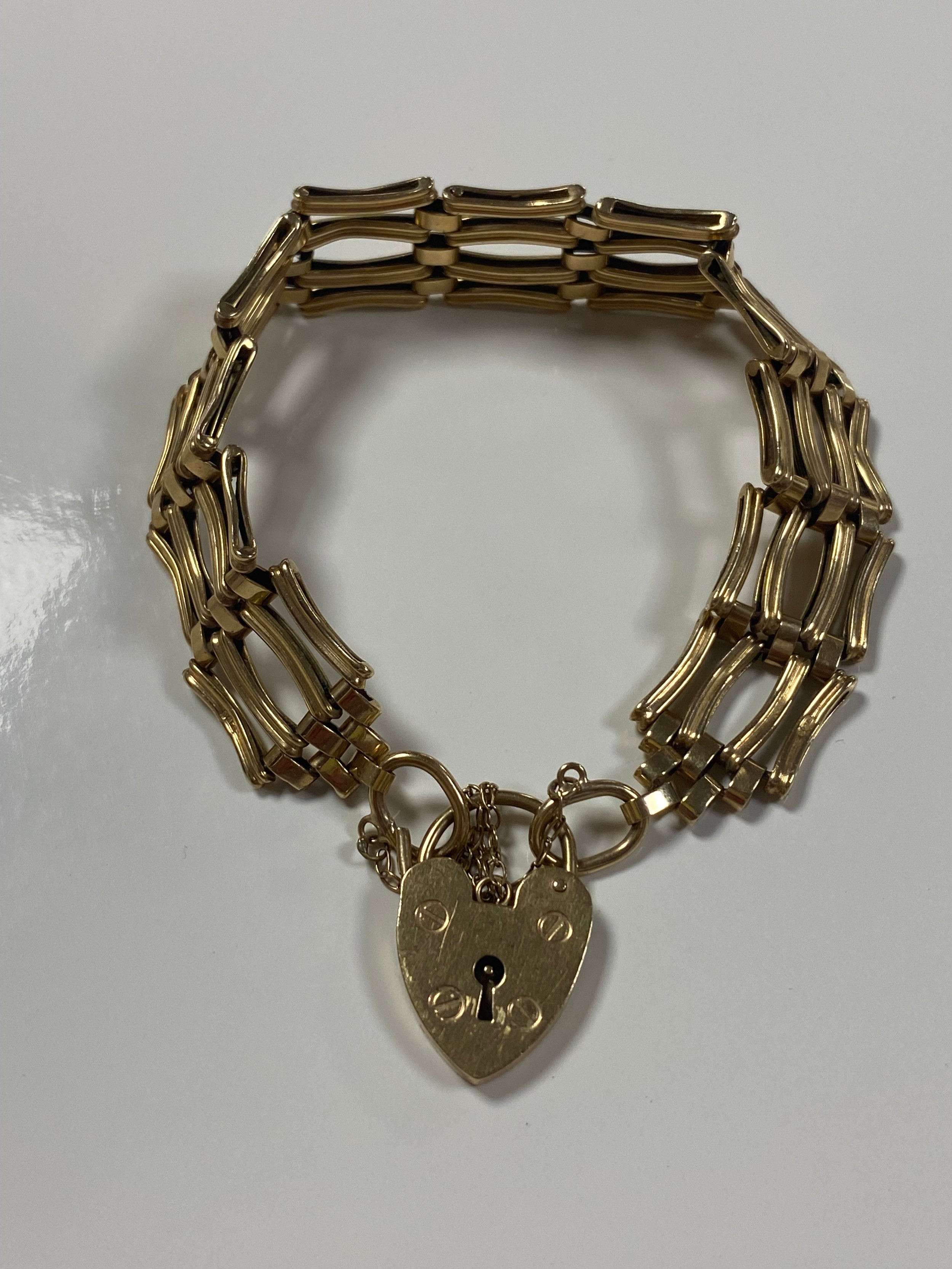 A 9ct gold gate bracelet, to padlock clasp -